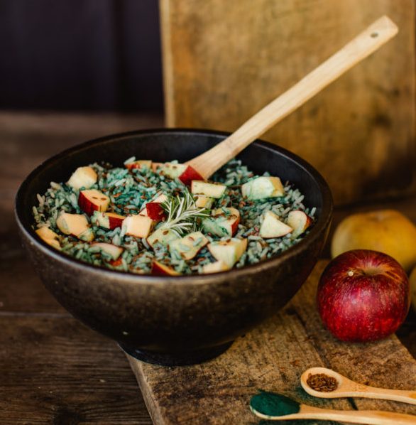 Rice flour, Hemp seeds, Lard, Rosemary, Apples (28%), Flax seeds, Spirulina (1.5%).