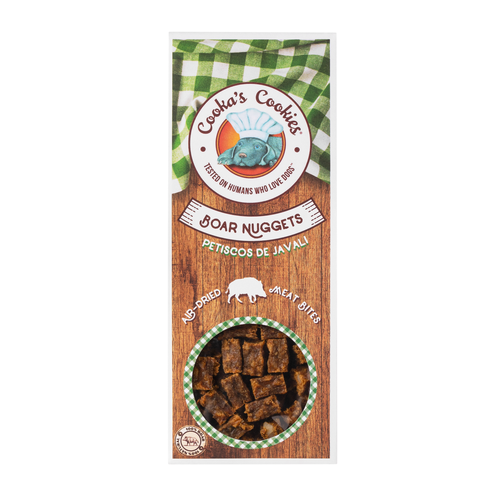 Boar Meat Nuggets are 100% natural dog treats made with novel protein boar and ground bones. These hypoallergenic nuggets provide 37.9% protein for dogs with food sensitivities, supporting muscle health and strong bones.