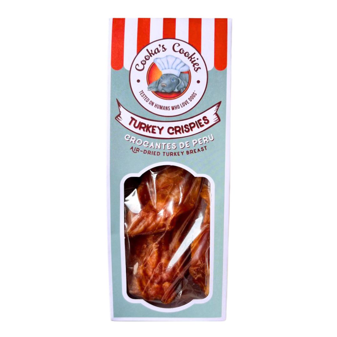 Turkey Crispies are 100% natural dog treats made from dried turkey breast. With 70.9% protein and only 3.3% fat, these lean, single-ingredient crisps are perfect for active dogs, weight management, and pets with food sensitivities.